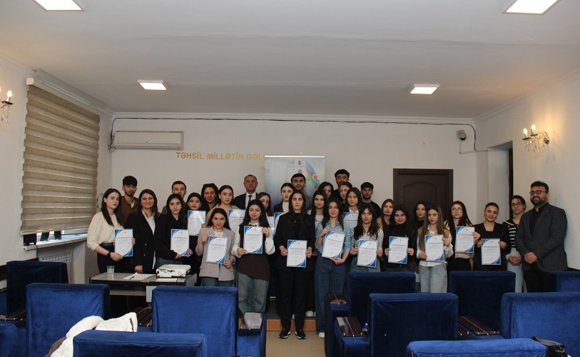 Rəsmi hissənin sonunda layihə çərçivəsində fəal iştirak etmiş gənclərə sertifikatlar təqdim olunub. Sertifikatlandırma mərasimi iştirakçılar üçün həm təşəkkür, həm də gələcək fəaliyyətləri üçün motivasiya xarakteri daşıyıb. Bağlanış tədbiri xatirə fotosunun çəkdirilməsi və layihənin ümumi nəticələrinin müzakirəsi ilə yekunlaşıb.